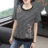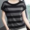 T-Shirt für Damen Sommer Große Größe Baumwoll-T-Shirt Weich Locker Gestreift Lässig Bequem Pullover T-Shirt Oberteil