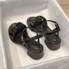 Med Comfort Schuhe für Damen Sandalen Blockabsatz Anzug Weiblich Beige Mittel Neu Chunky Mädchen Klar Mode Sommer Hoch Schwarz B
