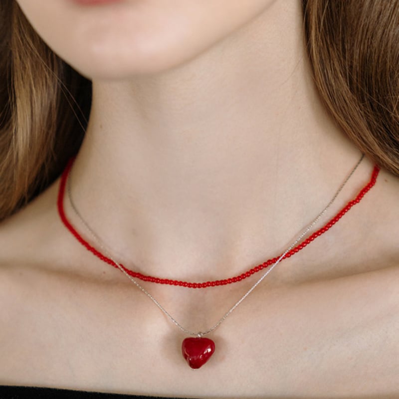 HAT [2er-Set] HW006 Herz & rote Perle mehrlagige Halskette