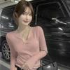 Roter Pullover Damen Herbst Winter Premium Slim Fit Langarm Strick Enges Crop Baselayer Top