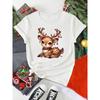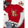 Cute Christmas reindeer print women's T-shirt cartoon casual short sleeved round neck women's red T-shirt women Y2k T-shirt women