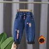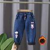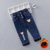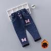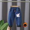 Fleece-Jeans für Mädchen im Herbst und Winter als Oberbekleidung, langohrige Kaninchen-Jeans im koreanischen Stil mit hoher Taille, trendige Hosen für Mädchen im koreanischen Stil