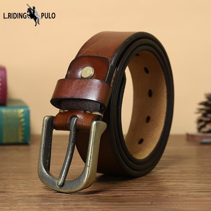 Gürtel Herren Verdicktes Erste Schicht Rindsleder Reines Kupfer Dornschließe Echtleder Retro Trend Vielseitig Jugend Jeansgürtel