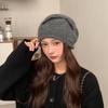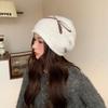 New Bow Knitted Hat Autumn and Winter Warm Ear Protection Pile Hat for Women Korean Style Big Head Circumference Showing Face Small Woolen Hat