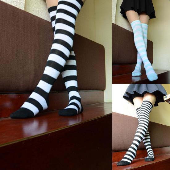 Herbst Winter Damen Gestreifte Oberschenkelhohe Elastische Warme Über dem Knie Lange Socken
