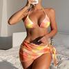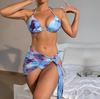 Badeanzug Damen Dreiteilig Tie Dye Neckholder Kordelzug Bedruckte Bikinis EMA