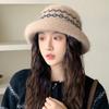 Fair Isle Style Knitted Basin Hat for Women in Autumn and Winter Warm Rolled Edge Fisherman Hat Outdoor Face Showing Small Travel Fashion Hat