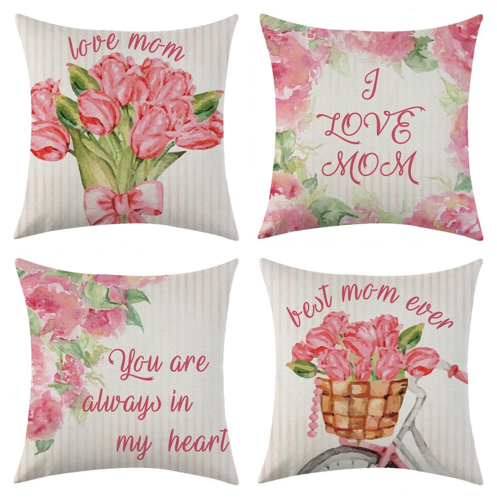 Neue Muttertagsserie Leinen Kissenbezug Auto Sofa Lendenkissen Kissen