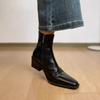Rindsleder Retro-Temperament zeigt Füße klein quadratischer Kopf dicker Absatz kurze Stiefel Leder Seitenreißverschluss Martin-Stiefel Damen Pendler Chelsea-Stiefel