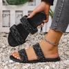 Außenhandel Übergröße Einwort mit flachem Boden Pailletten runder Kopf Damen coole Hausschuhe Sommer lässig Strand Fischmaul flacher Boden Damenschuhe