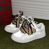 Schwarz Weiß Gemischte Farben Paar Freizeit-Sneakers Neuartig Reflektierend Dicke Sohle Schnürschuhe Atmungsaktive Damen Herren Schuhe