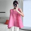 Miyake Damen Ärmelloses Oberteil mit unregelmäßiger Plissierung - Sommerkollektion 2024, Locker in Übergröße mit Rundhalsausschnitt