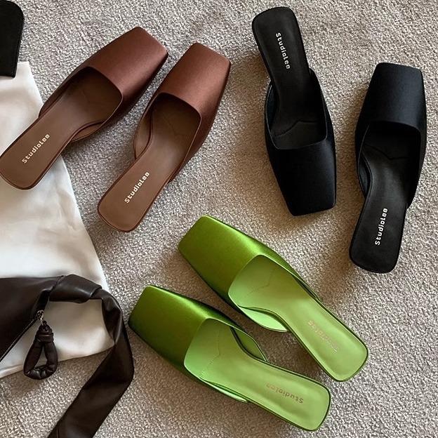 Schaffellversion~ Traubenmutter, der gleiche französische eckige Kopf, leichte Öffnung, Satin-Dreieck und Muller-Sandalen Damen Sommer Halbschuhe