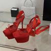 Eilyken Sexy Plateau Knöchel Schnürung Damen Pumps Sandalen Eckige Zehenpartie Dünne Hohe Absätze Nachtclub Party Stripper Schuhe
