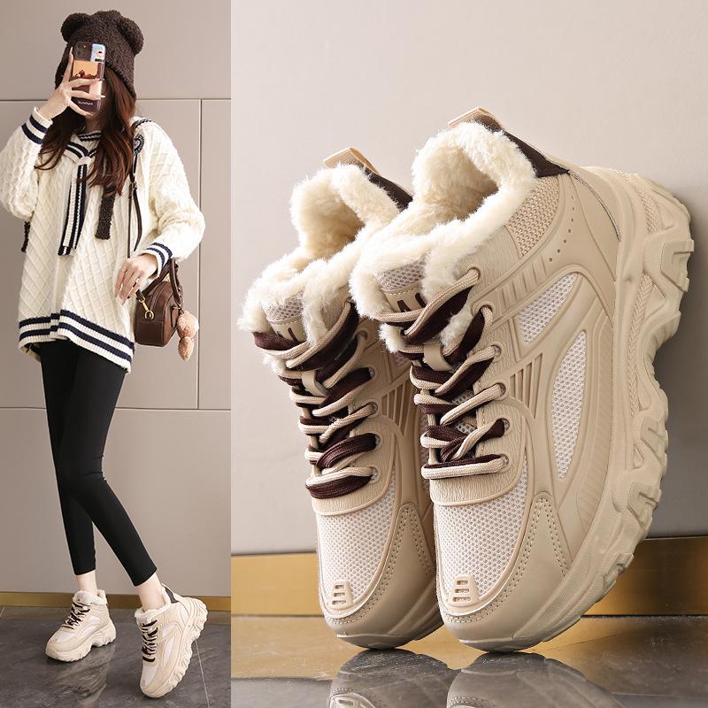 Winter neue Samt verdickte große Baumwollschuhe vielseitige Outdoor dicke Sohle erhöhend Dad Schuhe Mädchen Laufschuhe