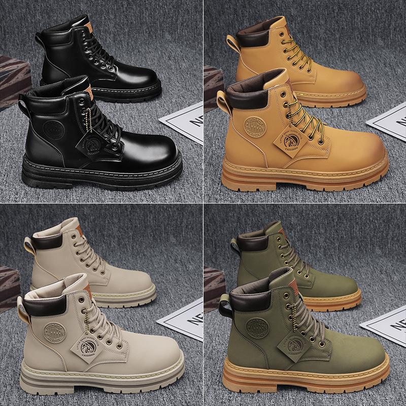 Martin Stiefel Frühling und Herbst neu Britischer Stil Rhabarber Stiefel Leder mittelhoch lässig vielseitig dicksohlige Martin Stiefel