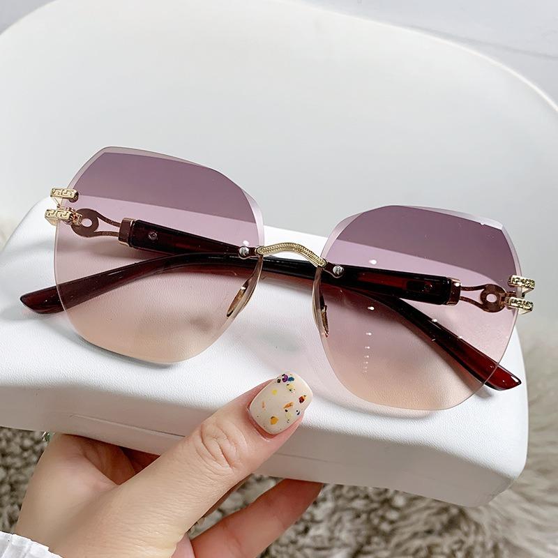 Trendy Frameless UV400 Retro Sunglasses Women Big Frame Shopping Accessories Eyewear Outdoor Driving Beach Sun Glasses Men