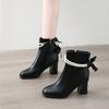 2025 Frühling und Herbst Einzelstiefel Neu Eckige Zehenpartie Seitlicher Reißverschluss Perlenbesetzte Schleife Hoher Absatz Damenschuhe