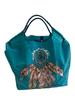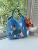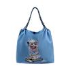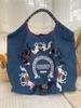 Trendige blaue bestickte Bucket Bag - Vielseitige Handtasche aus Oxford-Gewebe mit großem Fassungsvermögen