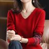 Pullover für Damen Herbst Winter Verdickt Warm Gestrickt Dehnbar Langarm V-Ausschnitt Oberteile