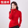 Hengyuanxiang Women's 100% Wool Semi-High Collar Thick Sweater