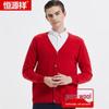Hengyuanxiang Men's V-Neck Pure Wool Cardigan Sweater
