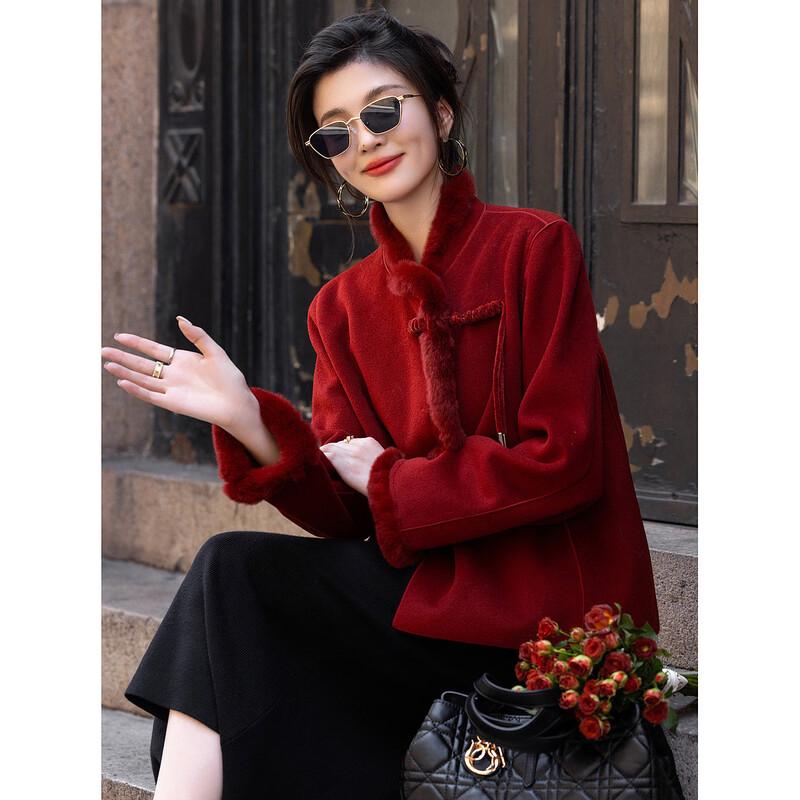 Demana Kurzer Kurzmantel im neuen chinesischen Stil aus Rex-Kaninchenfell
