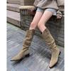 Vintage spitze Western-Cowboystiefel V-Ausschnitt Stacking-Stiefel dicker Absatz hoher Schaftumfang plissierte Stiefel Damen Ritterstiefel