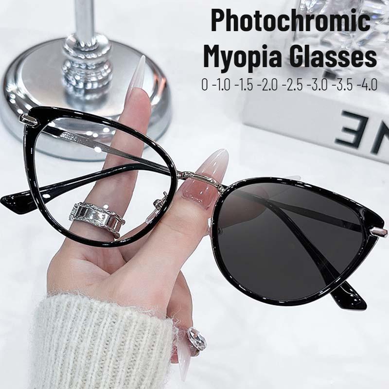 Cat Eye Pochromic Glasses Myopia Glasses for Women Indoor Outdoor Color Changing Sunglasses Ladies Near Sight Eyeglasses