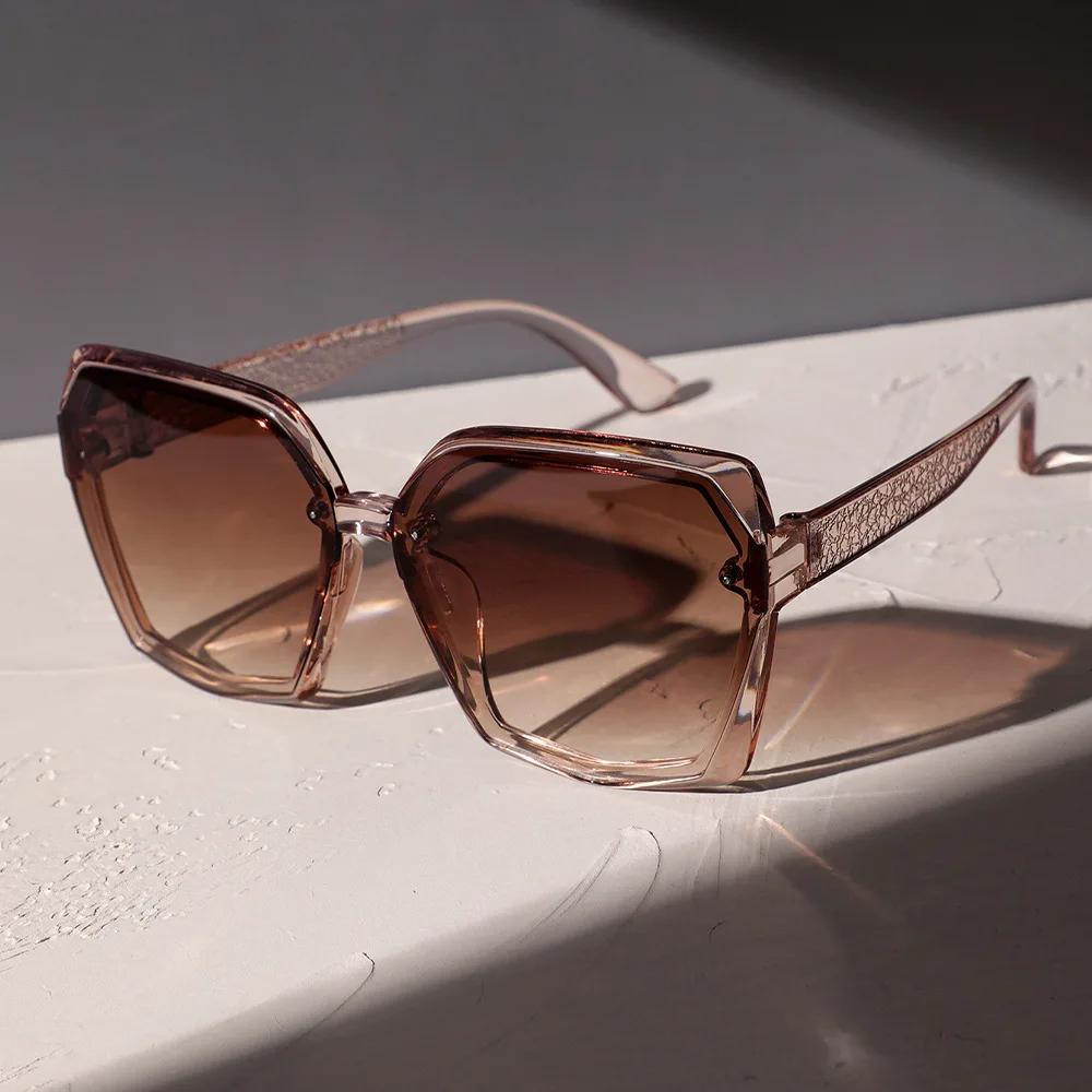 Champagne Brown Big Frame Sunglasses Ladies Fashion Sunshade Sunglasses Brand Designer Multicolor Sunglasses Women Vintage