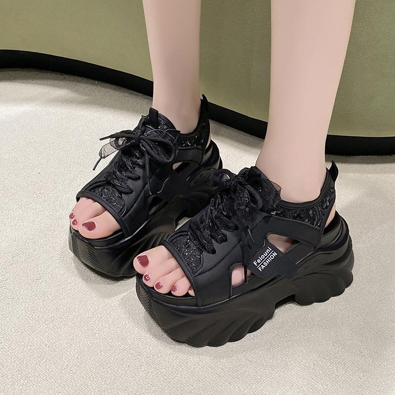 Plateausandalen mit Schnürung 2025 Sommer neu erhöhend vielseitig modisch lässig sportlich römische Sandalen