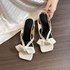 Französische Temperament-Pantoletten mit dickem Absatz und offenen Zehen für den Außenbereich, Damenschuhe 2025, neuer Sommer mit Rock, Schleifensandalen