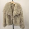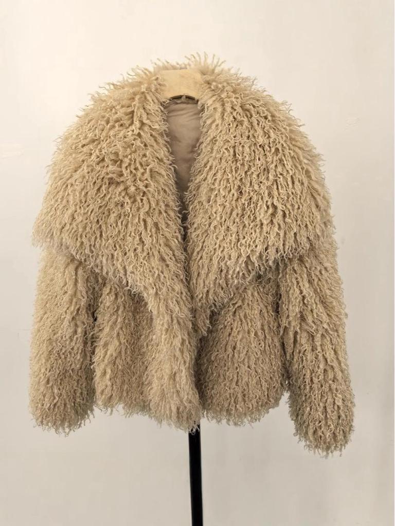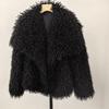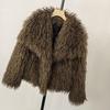 Damen Winter Kunstpelzmantel mit großem Revers - Imitation Waschbärfell