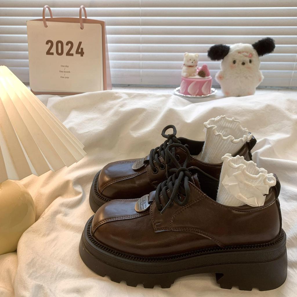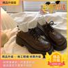 Kleine braune Lederschuhe für Damen im britischen Stil, dicke Sohlen, Zunahme im Frühjahr 2025, neue Schnür-Retro-High-End-Slipper