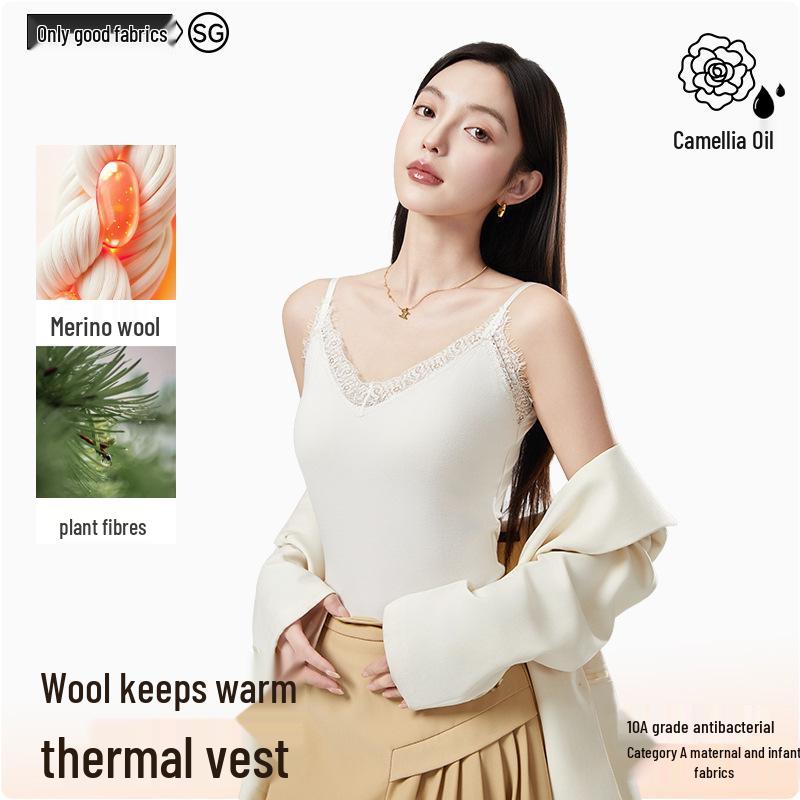 Warme Damen-Spitzen-Cami mit Brustpolstern - Samt-Kamelie Winterweste
