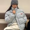 Neue Baumwollgepolsterte Jacke für Damen im Winter, Süße Kurzjacke mit Blumenmuster, Koreanische Version, Locker und Verdickt, Vielseitige Jacke