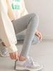 Autumn and winter style plus velvet and thickened nine-point pants high waist tummy-control trousers outer wear lambskin leggings