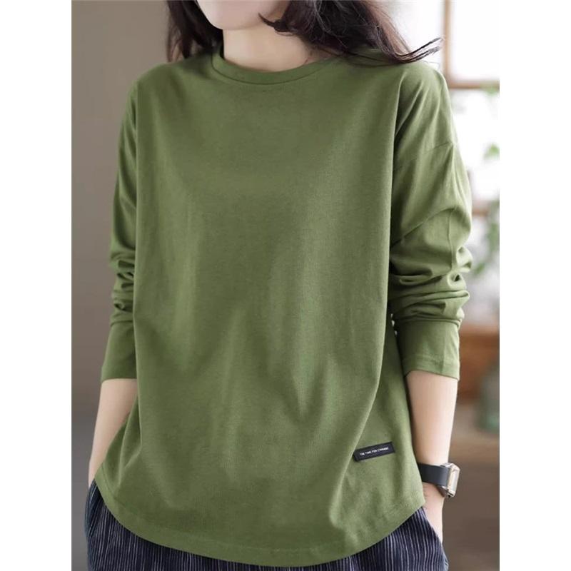 Autumn And Winter Vintage Solid Color Long Sleeved Loose T Shirt Base Shirt