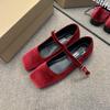 Mode Ballerinas für Damen Frühling Herbst 2025 Wildleder Mary Janes Damenschuhe Neu Retro Einfarbig Übergröße 42 43 44 Slipper Damen