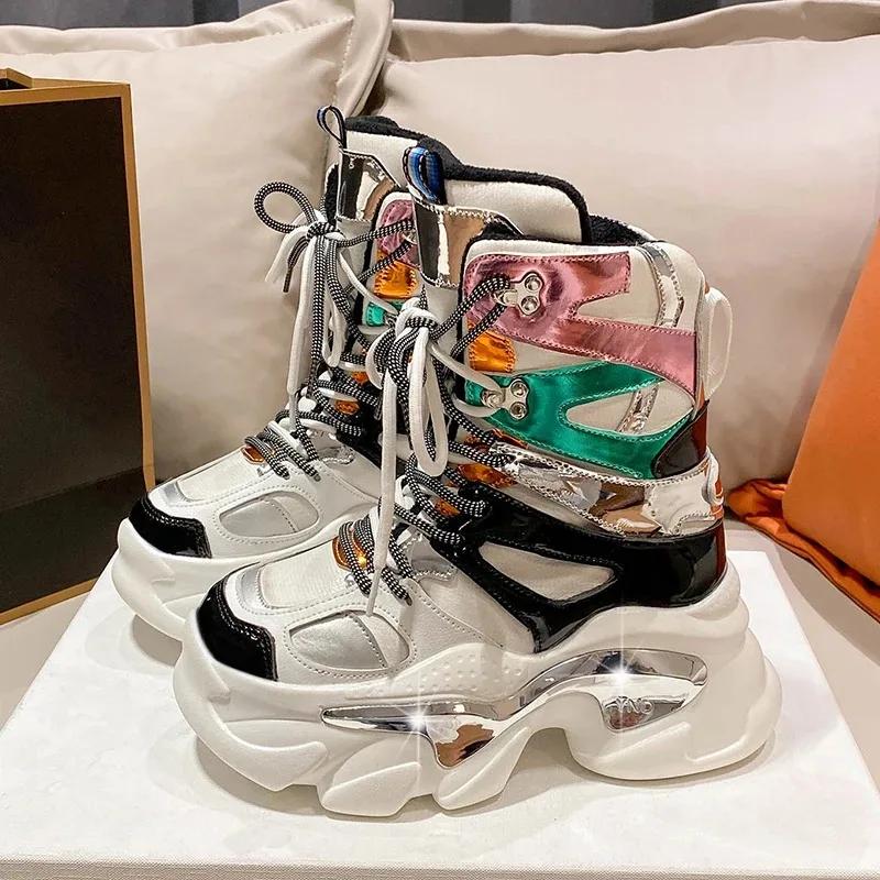 Modedesigner High Platform Schuhe Neue Herbst Winter Damen Stiefeletten Keile Winter Casual Dad Sneaker Leder Chunky Stiefel Frau