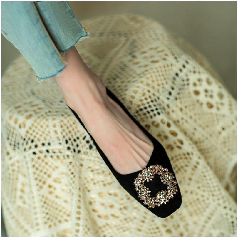 Mode Ballerinas Damenschuhe Frühling Herbst 2025 Neu Lässig Schwarz Französische Eckige Zehenpartie Ballerinas Strass Slipper Damenschuh Übergröße 34-43