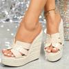 Mode Eilyken Mode Zehenfrei Geflochtene Plateau Keilabsätze Damen Hausschuhe Hohe Qualität Dicke Sohle Sandalen Pantoletten Schuhe