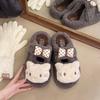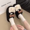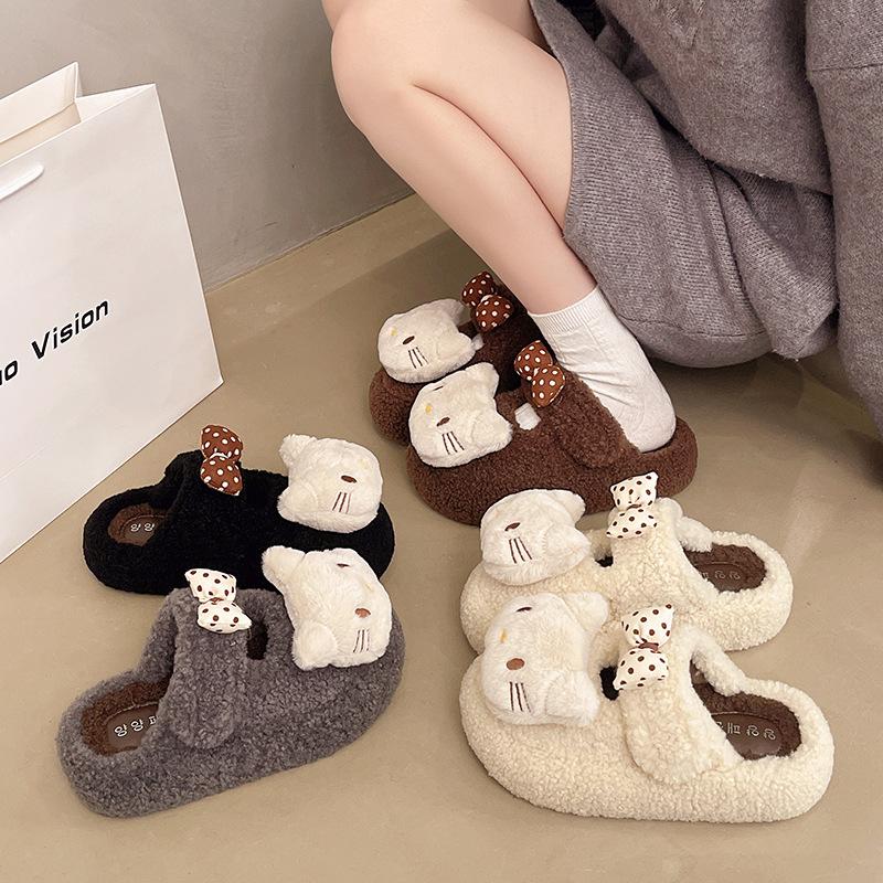 Niedliche Cartoon einfarbige Schleife mit Herzchen kt Katze flauschige Hausschuhe Damen 2025 Herbst und Winter neue Baumwoll-Hausschuhe für draußen