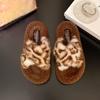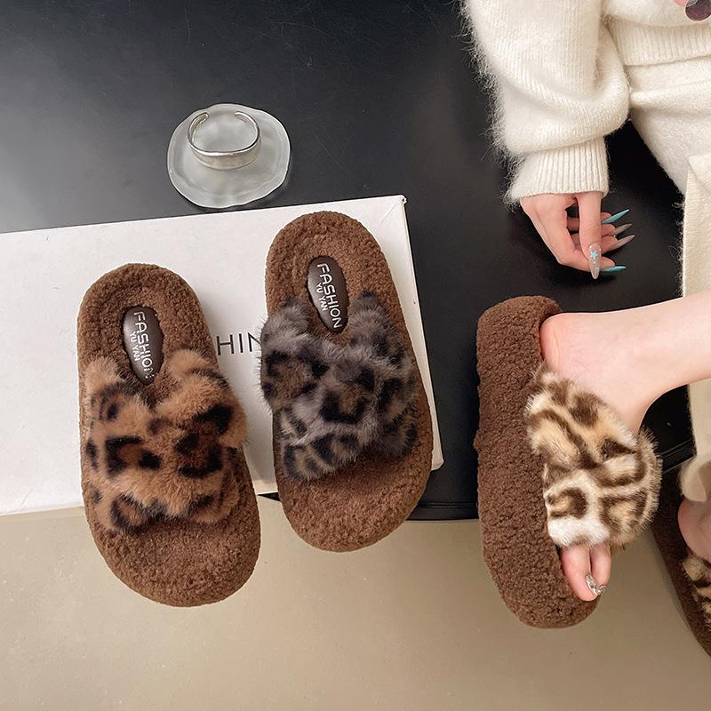 Dicksohlige flauschige Hausschuhe Damenschuhe 2025 Herbst und Winter neu große Größe doppelgestreift offen Zehen Samt Baumwollhausschuhe
