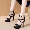 Damenschuhe im Sale 2025 Blockabsatz Reißverschluss hinten Damen Sandalen Elegant Party Peeptoe Sandalen Damen Superhohe Dünne Absätze Schuhe