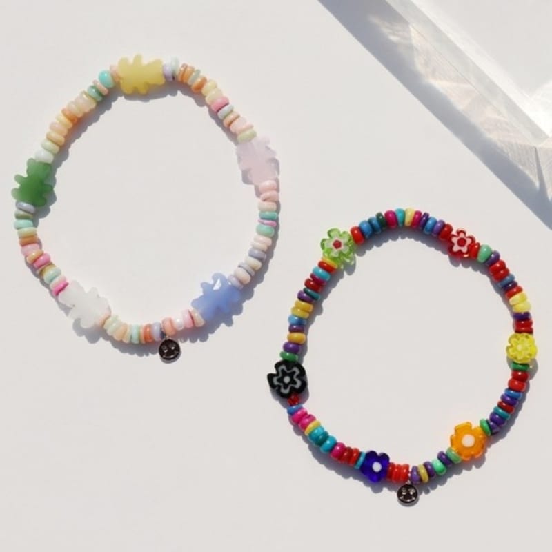 BONBEAU Colored mother of pearl and motive beads Bracelet Teddy bear flower charm mixed color mother of pearl bead bracelet