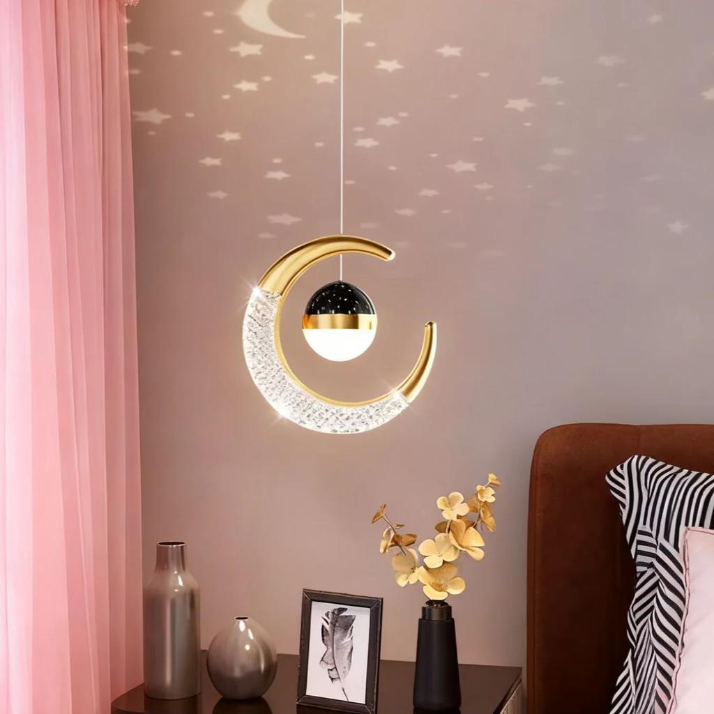LED Gold Acrylic Moon Bedside High Translucent Shade Pendant Light for Dining Room, Bedroom Home Decor, Adjustable Pendant