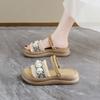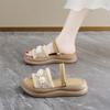 Damen coole Hausschuhe Xiaoxiangfeng dicksohlige Perlenhausschuhe flachsohlige Ein-Wort-Trageweise 2025 Sommer neue Sandalen für Damen