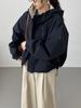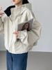 Petite Women’s Early Autumn Casual Loose Hooded Windbreaker Jacket with Stand-Up Collar (H2816)