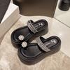Premium-Feeling mit Rock-Strandpantoffeln Damen 2025 Sommer neu höhenerhöhend Oberbekleidung schwarz Meer dicksohlige coole Pantoffeln